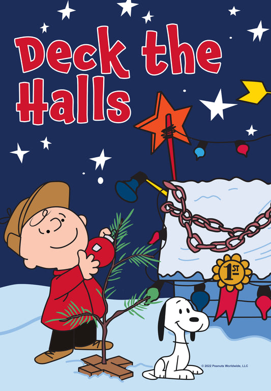 PEANUTSĀ® Deck The Halls Charlie Brown And Snoopy House Flag ( 1 item per case )